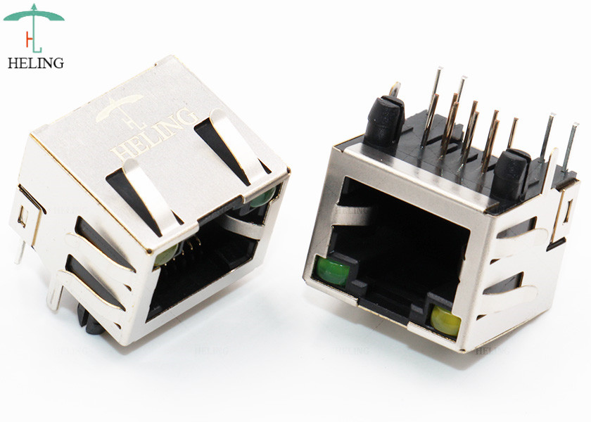 8P8C Shielded Modular Connectors DIP R / A Side Entry with GRE / YEL LED Indicator Pipe